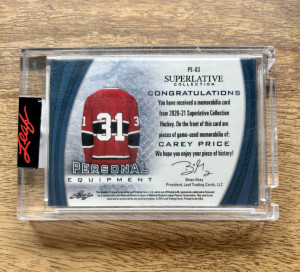 2020-21 Leaf Superlative Carey Price Equipment Memorabilia 5/12 Game Used