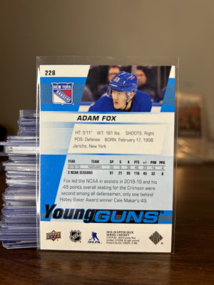 2019-20 UD ADAM FOX YOUNG GUNS ROOKIE!!! Gem mint