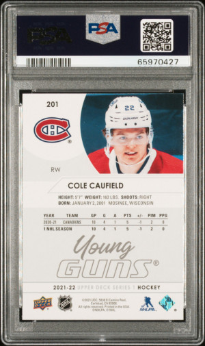 2021-22 Upper Deck Cole Caufield Young Guns Rookie PSA 10