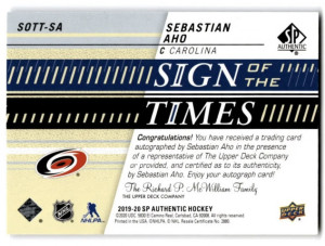 SEBASTIAN AHO Sign Of The Times AUTO HURRICANES!!! Hat Trick!