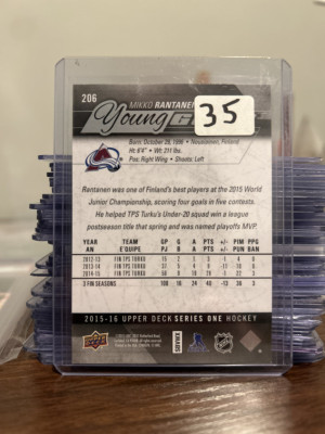 2015-16 UD Series 1 MIKKO RANTANEN YOUNG GUNS ROOKIE SP!!! Avalanche!