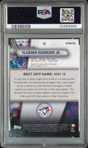 2019 BOWMAN'S BEST REFRACTOR #26 VLADIMIR GUERRERO JR. RC PSA 1