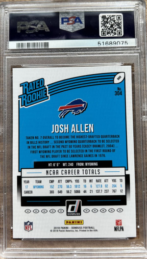 2018 PANINI DONRUSS #304 JOSH ALLEN RC BILLS PSA 10
