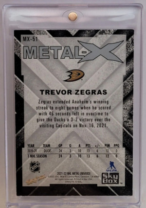 21-22 UD SKYBOX METAL TREVOR ZEGRAS METAL-X ROOKIE MX-51 ANAHEIM DUCKS