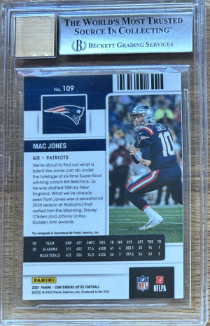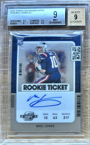 2021 Contenders Optic RC Mac Jones Auto Rookie Card #109 Patriots BGS 9/9