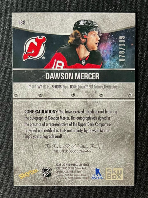 2021-22 Skybox Metal Universe Dawson Mercer #188 Rookie Auto /199