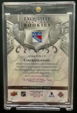 2019 Exquisite Collection Adam Fox Platinum Rookies Auto /199