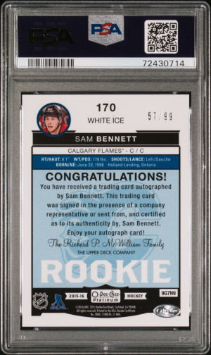 2015 OPC PLATINUM AUTO WHITE ICE SAM BENNETT RC #/99 POP 1 PSA 10