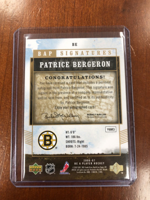 Patrice Bergeron Be A Player Autograph