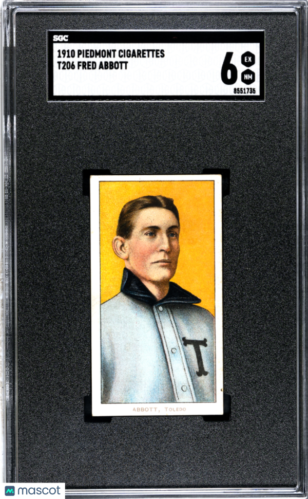 You are purchasing a 1910 Piedmont Cigarettes (T206) Fred Abbott SGC 6.0. You will receive the exact item in the photographs. Thank you for looking.