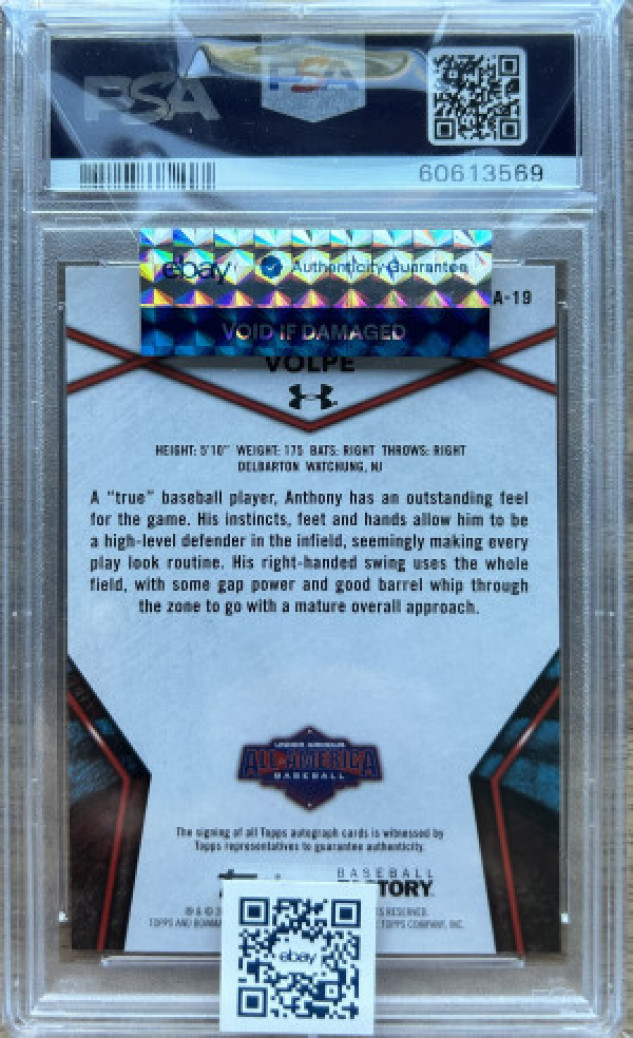 Thanks for your looking at my listing 2020 Bowman Chrome ANTHONY VOLPE /199 UA All America Auto UAA-19 PSA 8. Let me know if you have any questions!