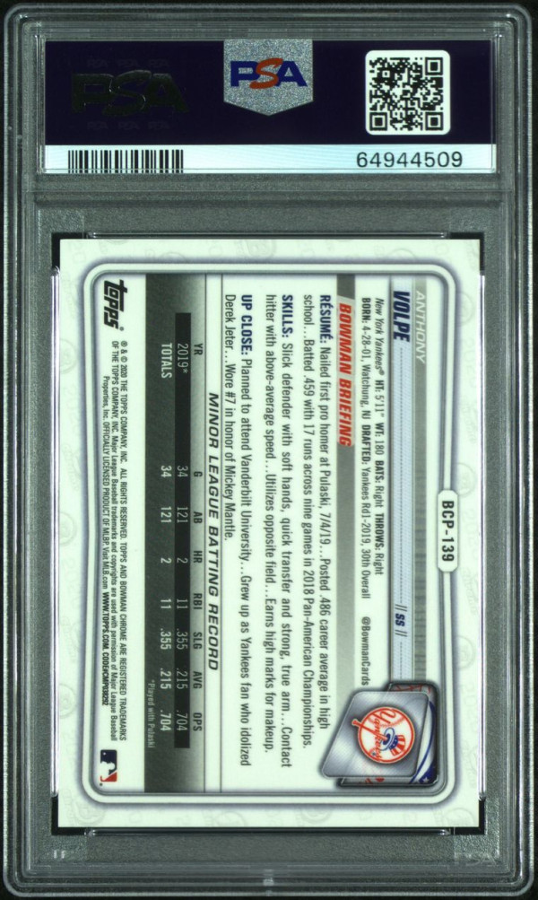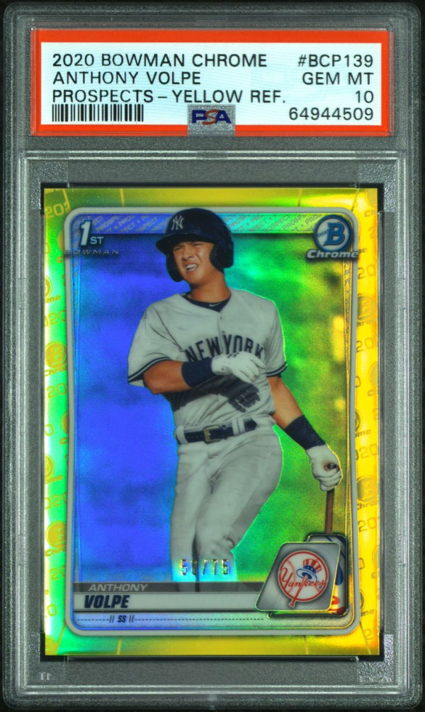2020 Bowman Chrome Prospects Anthony Volpe Yellow Refractor #BCP139 /75 PSA 10