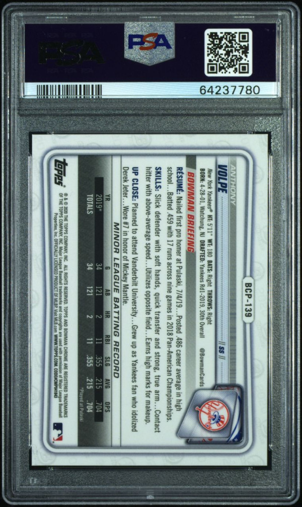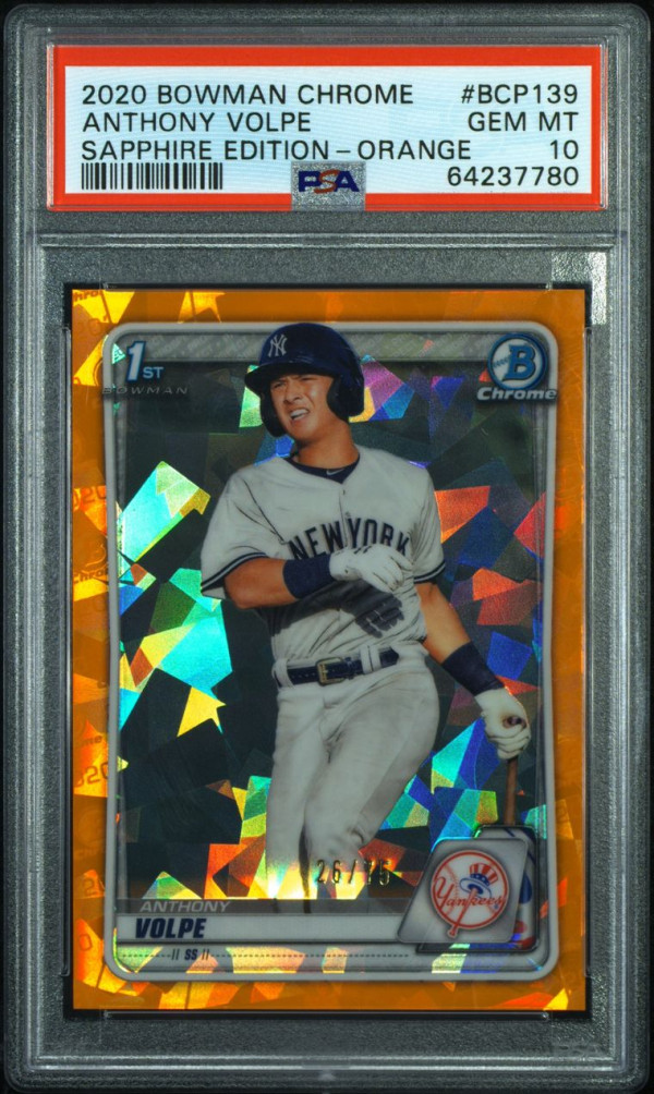 2020 Bowman Chrome Sapphire Edition Anthony Volpe BCP139 ORANGE /75 PSA 10