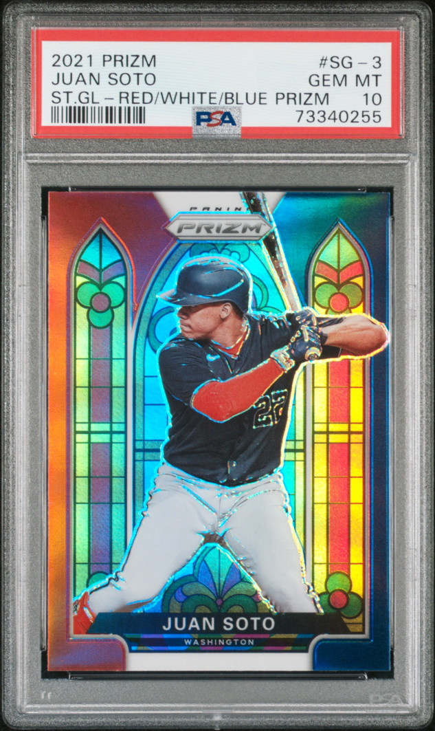 2021 PANINI PRIZM STAINED GLASS RED WHITE BLUE JUAN SOTO PSA 10