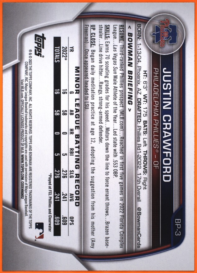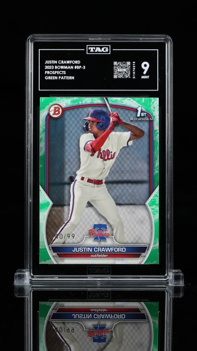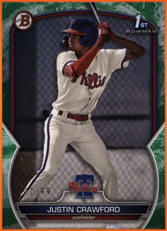 Thanks for your looking at my listing 2023 Bowman Justin Crawford Green Pattern. Let me know if you have any questions!