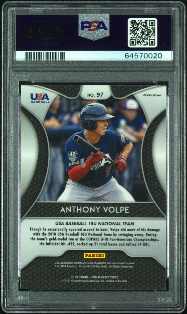 ANTHONY VOLPE 2019 Prizm Draft Picks WHITE SPARKLE Prizm PSA 10 | Auto 10