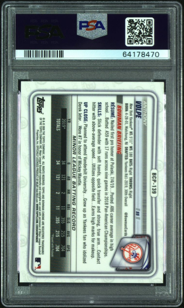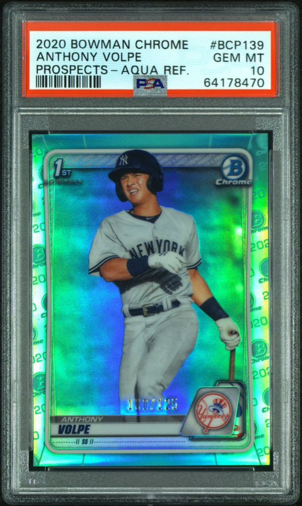 ANTHONY VOLPE 2020 Bowman Chrome BCP139 Aqua Refractor RC /125 PSA 10