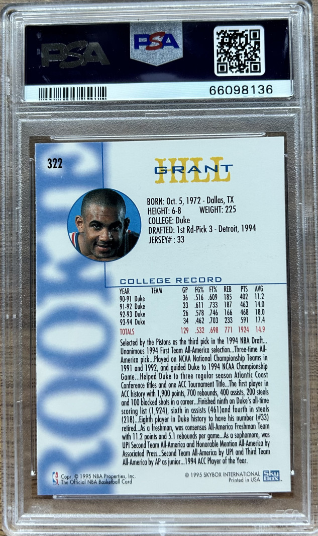 1994 HOOPS #322 GRANT HILL PISTONS RC HOF PSA 10