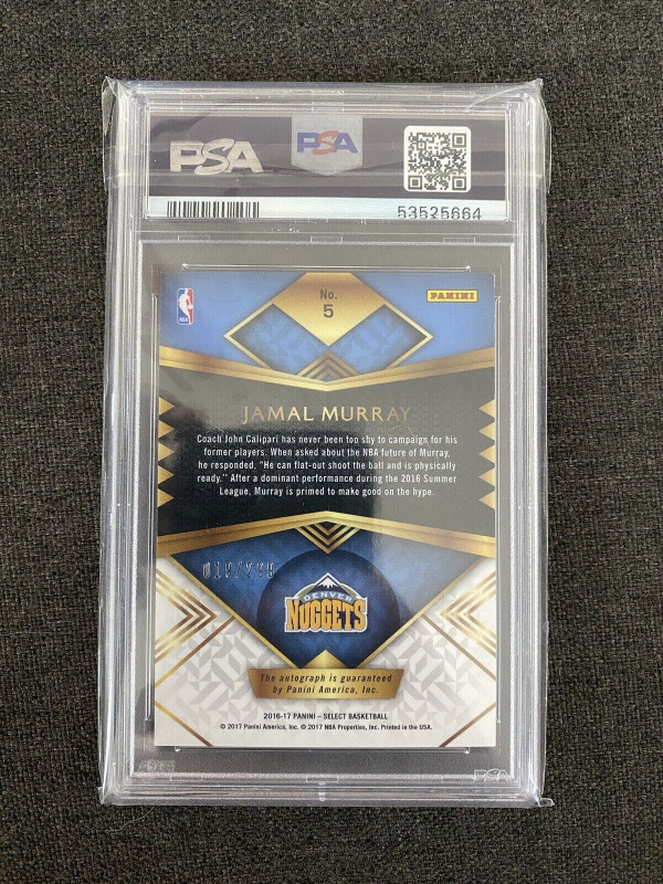 You are purchasing a 2016 Panini Select Rookie Signatures Jamal Murray #5 Rookie Signatures PSA 9. You will receive the exact card in the photographs. Thank you for looking. Listed with Mascot.