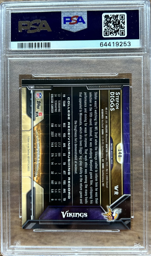 2015 TOPPS CHROME MINI #148 STEFON DIGGS RC POP 4 PSA 10