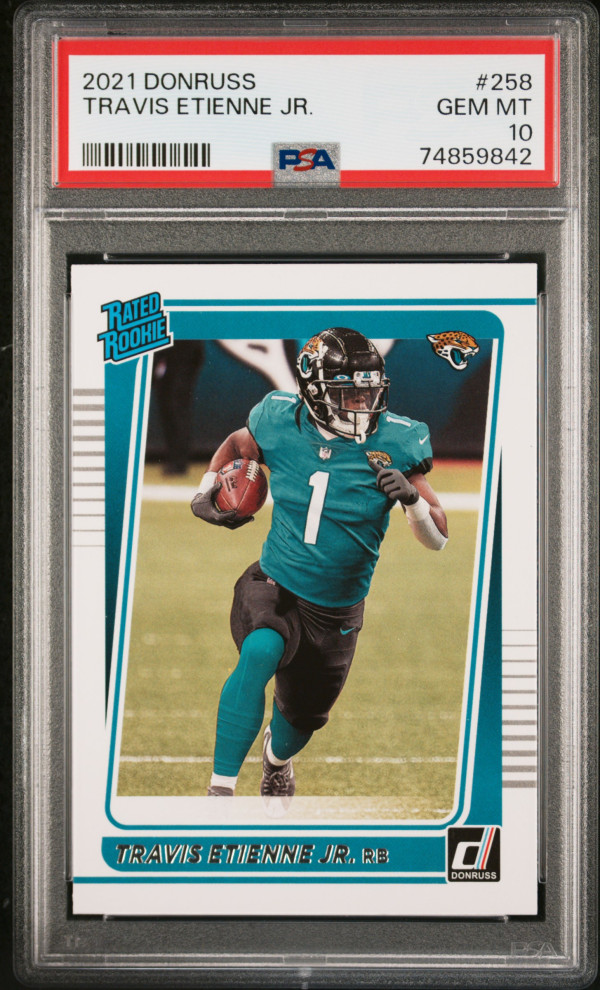 2021 PANINI DONRUSS #258 TRAVIS ETIENNE JR. RC JAGUARS PSA 10