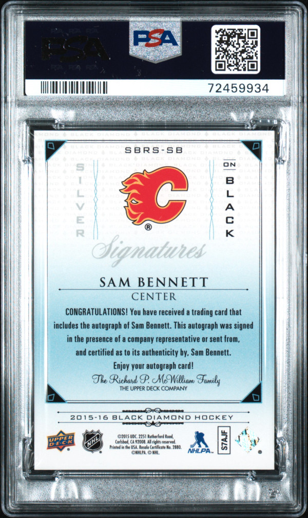2015 UD BLACK DIAMOND SILVER AUTO SAM BENNETT RC #/199 POP 1 PSA 10
