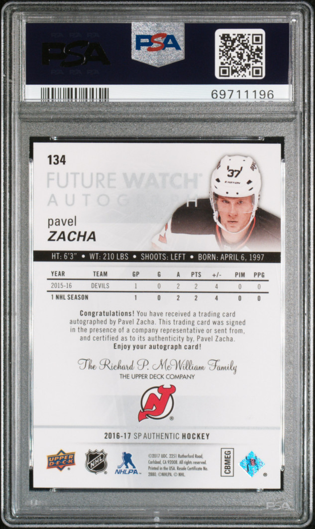 2016/17 SP Authentic Future Watch Rookie Auto Pavel Zacha PSA 10