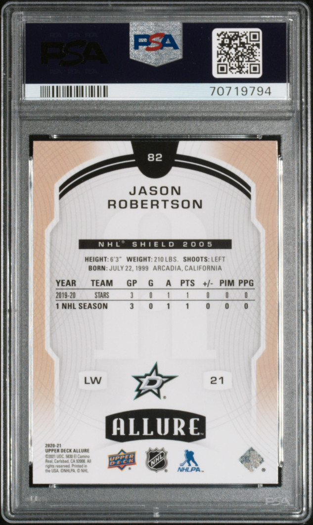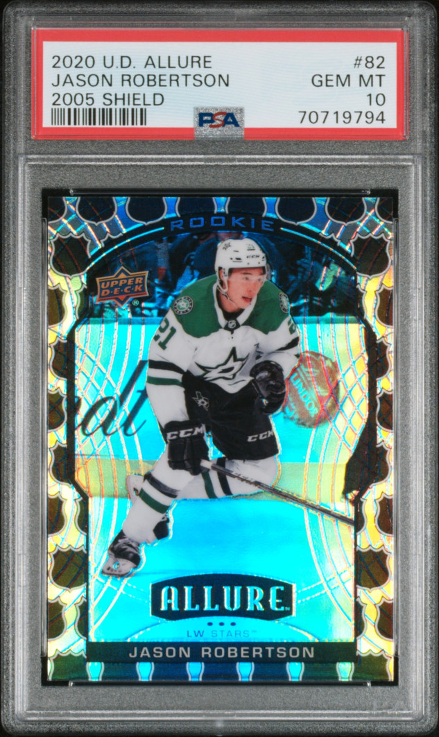2020-21 Upper Deck Allure 2005 NHL Shield #82 Jason Robertson Rookie Card PSA 10