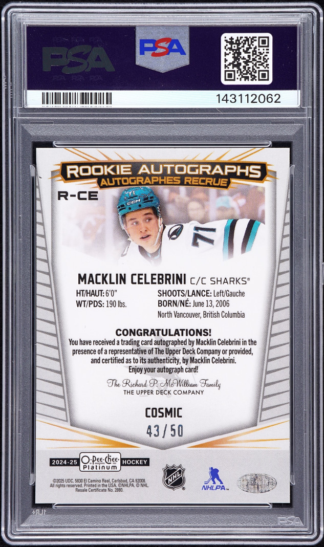 Thanks for your looking at my listing 2024 Upper Deck O-Pee-Chee Platinum Rookie Macklin Celebrini Rookie Auto PSA 10. Let me know if you have any questions!