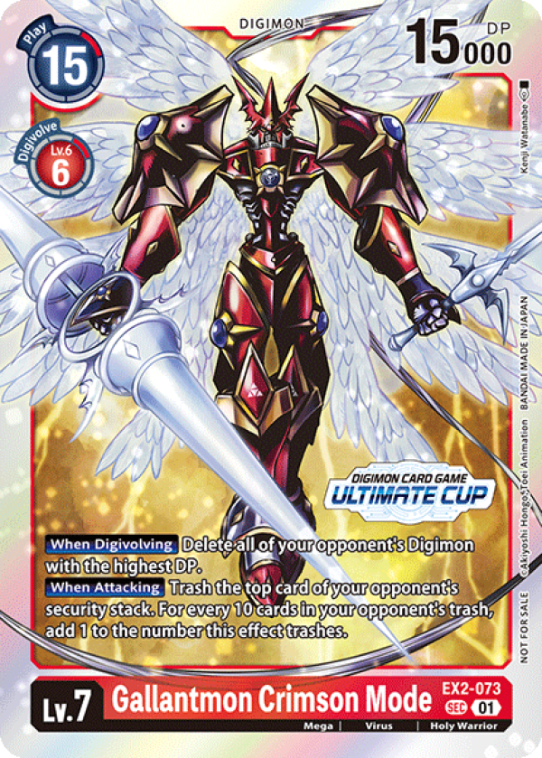 [When Digivolving] Delete all of your opponent's Digimon with the highest DP.[When Attacking] Trash the top card of your opponent's security stack. Add 1 to the number of cards trashed by this effect for every 10 cards in your opponent's trash.