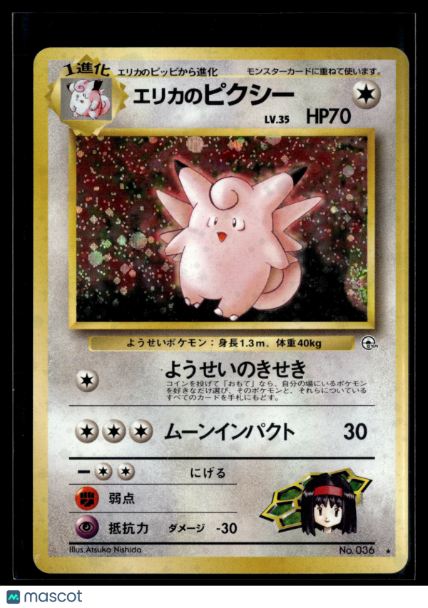 You are purchasing a 1998 Pokemon Erika's Clefable #No.036 Japanese. You will receive the exact item in the photographs. Thank you for looking.