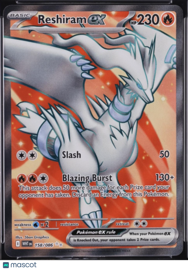 You are purchasing a 2025 Pokemon Reshiram EX #158/86. You will receive the exact item in the photographs. Thank you for looking.