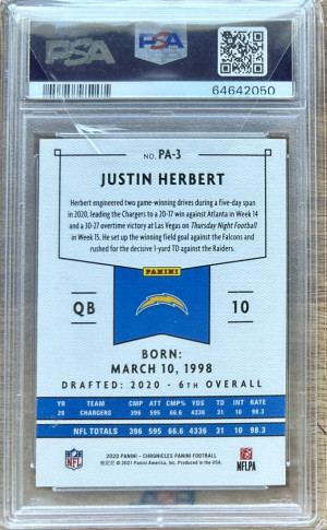 2020 Chronicles Panini Justin Herbert Rookie RC #PA-3 PSA 10 Chargers 🔥🔥