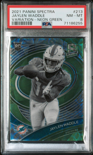 2021 Panini Spectra Jaylen Waddle Variation - Neon Green Rookie RC /35 PSA 8