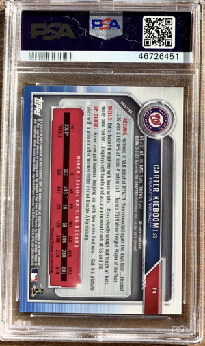 2019 Bowman Chrome Carter Kieboom Blue Refractor/150 PSA 10