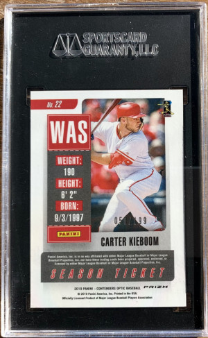 2019 Panini Contenders Optic Carter Kieboom Ruby Wave Prizm /199 SGC 10